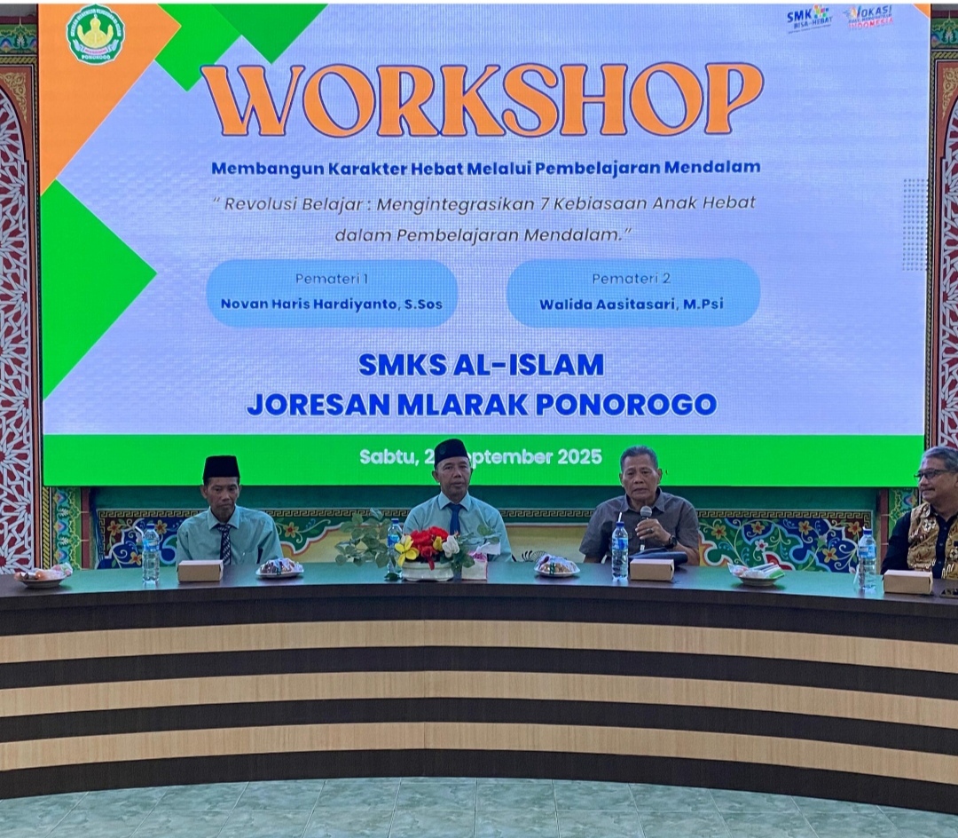 Acara ini dihadiri oleh berbagai tokoh penting, di antaranya: Direktur Pondok Pesantren Al-Islam Joresan, Ustadz Drs. KH. Usman Yudi, M.Pd.I, Pengawas Sekolah SMK, Bapak Sumarwan, S.Pd., MMT, Kepala Sekolah SMKS Al-Islam Joresan, Ustadz Imam Haromain, S.Ag. Workshop ini menghadirkan dua narasumber utama yakni Bapak Novan Haris Hardyanto, S.Sos yang menyampaikan materi Pembelajaran Mendalam sebagai konsep revolusi belajar untuk meningkatkan daya pikir kritis, kolaboratif, dan kreatif peserta didik. Ibu Walida Aasitasari, M.Psi dengan materi Parenting dan 7 Kebiasaan Anak Hebat Indonesia yang menekankan pentingnya peran guru dan orang tua dalam membentuk karakter positif anak.